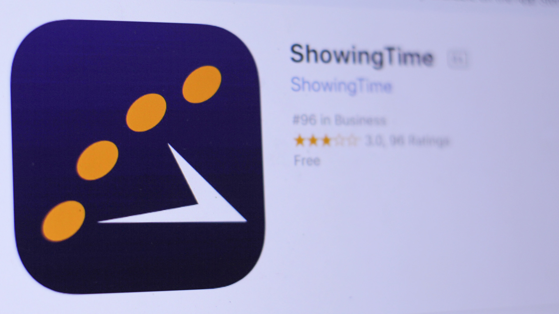 JEMBER, EAST JAVA, INDONESIA, MAY 30, 2018. ShowingTime app in App Store. Close-up on the laptop screen.